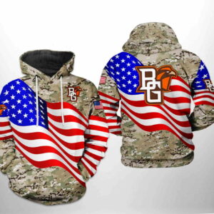 Bowling Green Falcons NCAA US Flag Camo Veteran 3D Hoodie